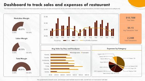 This slide showcases dashboard that can help restaurant to keep track of sales and expenses. Its key elements are total sales, average transactions, non labor margin, expenses by category etc. Are you in need of a template that can accommodate all of your creative concepts This one is crafted professionally and can be altered to fit any style. Use it with Google Slides or PowerPoint. Include striking photographs, symbols, depictions, and other visuals. Fill, move around, or remove text boxes as desired. Test out color palettes and font mixtures. Edit and save your work, or work with colleagues. Download Online Promotional Activities Dashboard To Track Sales Sample Pdf and observe how to make your presentation outstanding. Give an impeccable presentation to your group and make your presentation unforgettable. This slide showcases dashboard that can help restaurant to keep track of sales and expenses. Its key elements are total sales, average transactions, non labor margin, expenses by category etc.