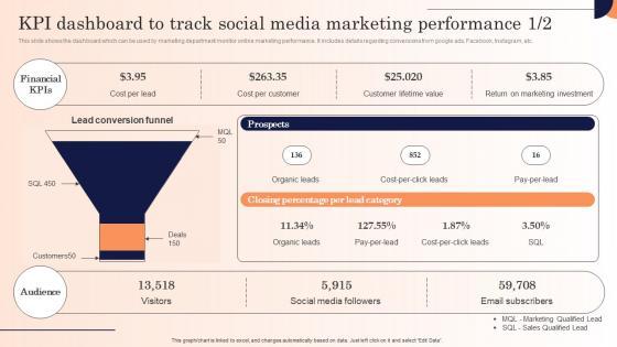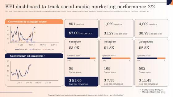 This slide shows the dashboard which can be used by marketing department monitor online marketing performance. It includes details regarding conversions from google ads, Facebook, Instagram, etc.Welcome to our selection of the Kpi Dashboard To Track Social Media Marketing Strategic Marketing Campaign Inspiration Pdf. These are designed to help you showcase your creativity and bring your sphere to life. Planning and Innovation are essential for any business that is just starting out. This collection contains the designs that you need for your everyday presentations. All of our PowerPoints are 100Precent editable, so you can customize them to suit your needs. This multi-purpose template can be used in various situations. Grab these presentation templates today. This slide shows the dashboard which can be used by marketing department monitor online marketing performance. It includes details regarding conversions from google ads, Facebook, Instagram, etc.