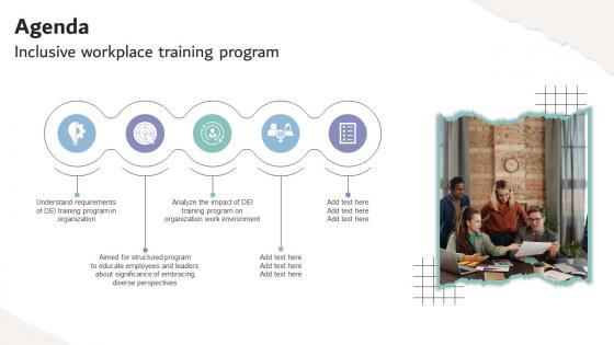 Find a pre-designed and impeccable Agenda Inclusive Workplace Training Program DTE SS V. The templates can ace your presentation without additional effort. You can download these easy-to-edit presentation templates to make your presentation stand out from others. So, what are you waiting for Download the template from Slidegeeks today and give a unique touch to your presentation. Our Agenda Inclusive Workplace Training Program DTE SS V are topically designed to provide an attractive backdrop to any subject. Use them to look like a presentation pro.