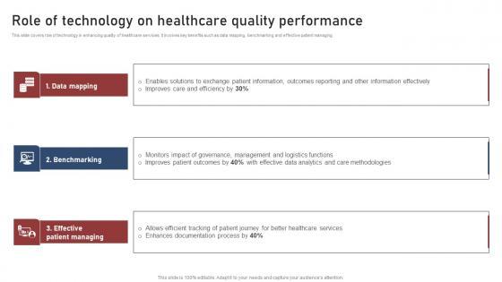 This slide covers role of technology in enhancing quality of healthcare services. It involves key benefits such as data mapping, benchmarking and effective patient managing. Want to ace your presentation in front of a live audience Our Role Of Technology Healthcare Transforming Medical Workflows Via His Integration Slides Pdf can help you do that by engaging all the users towards you. Slidegeeks experts have put their efforts and expertise into creating these impeccable powerpoint presentations so that you can communicate your ideas clearly. Moreover, all the templates are customizable, and easy to edit and downloadable. Use these for both personal and commercial use. This slide covers role of technology in enhancing quality of healthcare services. It involves key benefits such as data mapping, benchmarking and effective patient managing.