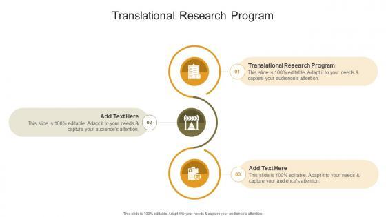 Introducing our well designed Translational Research Program In Powerpoint And Google Slides Cpb. This PowerPoint design presents information on topics like Translational Research Program. As it is predesigned it helps boost your confidence level. It also makes you a better presenter because of its high quality content and graphics. This PPT layout can be downloaded and used in different formats like PDF, PNG, and JPG. Not only this, it is available in both Standard Screen and Widescreen aspect ratios for your convenience. Therefore, click on the download button now to persuade and impress your audience. Our Translational Research Program In Powerpoint And Google Slides Cpb are topically designed to provide an attractive backdrop to any subject. Use them to look like a presentation pro.