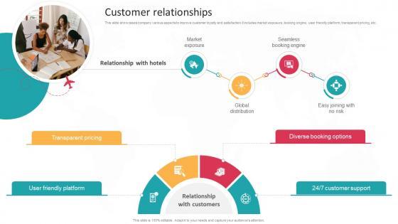This slide showcases company various aspects to improve customer loyalty and satisfaction.it includes market exposure, booking engine, user friendly platform, transparent pricing, etc. Slidegeeks is one of the best resources for PowerPoint templates. You can download easily and regulate Customer Relationships Global Travel Booking System Business Model BMC SS V for your personal presentations from our wonderful collection. A few clicks is all it takes to discover and get the most relevant and appropriate templates. Use our Templates to add a unique zing and appeal to your presentation and meetings. All the slides are easy to edit and you can use them even for advertisement purposes. This slide showcases company various aspects to improve customer loyalty and satisfaction.it includes market exposure, booking engine, user friendly platform, transparent pricing, etc.