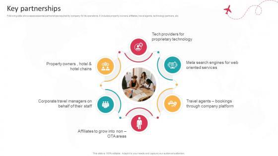 Following slide showcases essential partnerships required by company for its operations. It includes property owners, affiliates, travel agents, technology partners, etc. Present like a pro with Key Partnerships Global Travel Booking System Business Model BMC SS V. Create beautiful presentations together with your team, using our easy-to-use presentation slides. Share your ideas in real-time and make changes on the fly by downloading our templates. So whether you are in the office, on the go, or in a remote location, you can stay in sync with your team and present your ideas with confidence. With Slidegeeks presentation got a whole lot easier. Grab these presentations today. Following slide showcases essential partnerships required by company for its operations. It includes property owners, affiliates, travel agents, technology partners, etc.