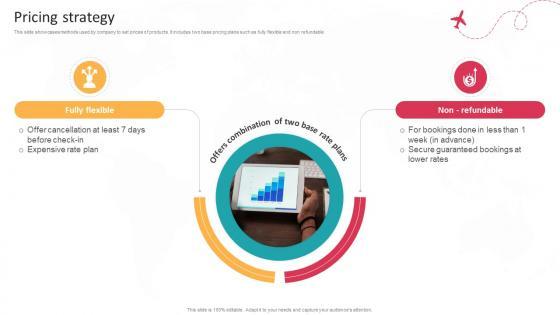 This slide showcases methods used by company to set prices of products. It includes two base pricing plans such as fully flexible and non refundable. Do you have an important presentation coming up Are you looking for something that will make your presentation stand out from the rest Look no further than Pricing Strategy Global Travel Booking System Business Model BMC SS V. With our professional designs, you can trust that your presentation will pop and make delivering it a smooth process. And with Slidegeeks, you can trust that your presentation will be unique and memorable. So why wait Grab Pricing Strategy Global Travel Booking System Business Model BMC SS V today and make your presentation stand out from the rest This slide showcases methods used by company to set prices of products. It includes two base pricing plans such as fully flexible and non refundable.