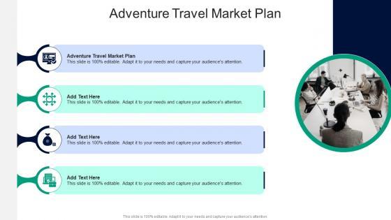 Introducing our well designed Adventure Travel Market Plan In Powerpoint And Google Slides Cpb. This PowerPoint design presents information on topics like Adventure Travel Market Plan. As it is predesigned it helps boost your confidence level. It also makes you a better presenter because of its high quality content and graphics. This PPT layout can be downloaded and used in different formats like PDF, PNG, and JPG. Not only this, it is available in both Standard Screen and Widescreen aspect ratios for your convenience. Therefore, click on the download button now to persuade and impress your audience. Our Adventure Travel Market Plan In Powerpoint And Google Slides Cpb are topically designed to provide an attractive backdrop to any subject. Use them to look like a presentation pro.