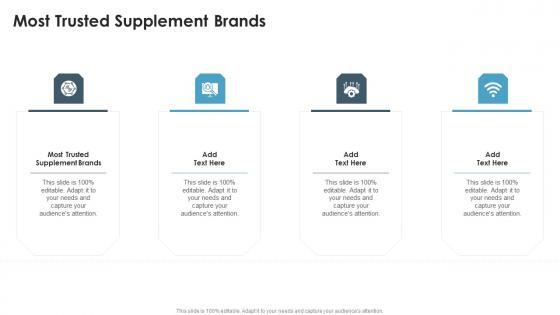 Presenting our innovatively-designed set of slides titled Most Trusted Supplement Brands In Powerpoint And Google Slides Cpb. This completely editable PowerPoint graphic exhibits Most Trusted Supplement Brands that will help you convey the message impactfully. It can be accessed with Google Slides and is available in both standard screen and widescreen aspect ratios. Apart from this, you can download this well-structured PowerPoint template design in different formats like PDF, JPG, and PNG. So, click the download button now to gain full access to this PPT design. Our Most Trusted Supplement Brands In Powerpoint And Google Slides Cpb are topically designed to provide an attractive backdrop to any subject. Use them to look like a presentation pro.