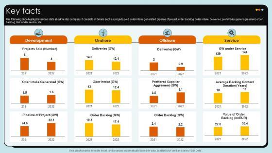 The following slide highlights various stats about Vestas company. It consists of details such as projects sold, order intake generated, pipeline of project, order backlog, order intake, deliveries, preferred supplier agreement, order backlog, GW under service, etc.Make sure to capture your audiences attention in your business displays with our gratis customizable Key Facts Wind Turbines Manufacturer Company Profile CP SS V. These are great for business strategies, office conferences, capital raising or task suggestions. If you desire to acquire more customers for your tech business and ensure they stay satisfied, create your own sales presentation with these plain slides. The following slide highlights various stats about Vestas company. It consists of details such as projects sold, order intake generated, pipeline of project, order backlog, order intake, deliveries, preferred supplier agreement, order backlog, GW under service, etc.