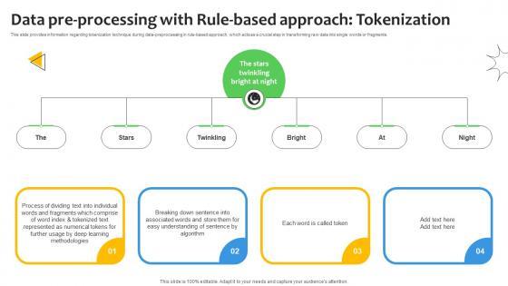 This slide provides information regarding tokenization technique during data-preprocessing in rule-based approach, which acts as a crucial step in transforming raw data into single words or fragments. If your project calls for a presentation, then Slidegeeks is your go-to partner because we have professionally designed, easy-to-edit templates that are perfect for any presentation. After downloading, you can easily edit Data Pre Processing With Rule Sentiment Analysis Demystified Understanding AI SS V and make the changes accordingly. You can rearrange slides or fill them with different images. Check out all the handy templates This slide provides information regarding tokenization technique during data-preprocessing in rule-based approach, which acts as a crucial step in transforming raw data into single words or fragments.
