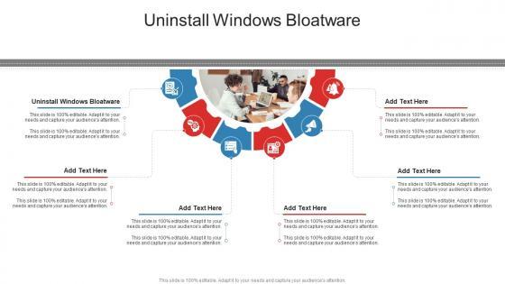 Introducing our well designed Uninstall Windows Bloatware In Powerpoint And Google Slides Cpb. This PowerPoint design presents information on topics like Uninstall Windows Bloatware. As it is predesigned it helps boost your confidence level. It also makes you a better presenter because of its high quality content and graphics. This PPT layout can be downloaded and used in different formats like PDF, PNG, and JPG. Not only this, it is available in both Standard Screen and Widescreen aspect ratios for your convenience. Therefore, click on the download button now to persuade and impress your audience. Our Uninstall Windows Bloatware In Powerpoint And Google Slides Cpb are topically designed to provide an attractive backdrop to any subject. Use them to look like a presentation pro.