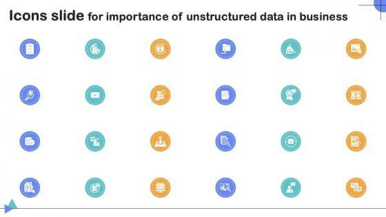 This modern and well-arranged Icons Slide For Importance Of Unstructured Data In Business Ppt Example provides lots of creative possibilities. It is very simple to customize and edit with the Powerpoint Software. Just drag and drop your pictures into the shapes. All facets of this template can be edited with Powerpoint, no extra software is necessary. Add your own material, put your images in the places assigned for them, adjust the colors, and then you can show your slides to the world, with an animated slide included. Our Icons Slide For Importance Of Unstructured Data In Business Ppt Example are topically designed to provide an attractive backdrop to any subject. Use them to look like a presentation pro.
