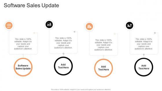 Introducing our well designed Software Sales Update In Powerpoint And Google Slides Cpb. This PowerPoint design presents information on topics like Software Sales Update. As it is predesigned it helps boost your confidence level. It also makes you a better presenter because of its high quality content and graphics. This PPT layout can be downloaded and used in different formats like PDF, PNG, and JPG. Not only this, it is available in both Standard Screen and Widescreen aspect ratios for your convenience. Therefore, click on the download button now to persuade and impress your audience. Our Software Sales Update In Powerpoint And Google Slides Cpb are topically designed to provide an attractive backdrop to any subject. Use them to look like a presentation pro.