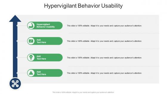 Introducing our well designed Hypervigilant Behavior Usability In Powerpoint And Google Slides Cpb. This PowerPoint design presents information on topics like Hypervigilant Behavior Usability. As it is predesigned it helps boost your confidence level. It also makes you a better presenter because of its high-quality content and graphics. This PPT layout can be downloaded and used in different formats like PDF, PNG, and JPG. Not only this, it is available in both Standard Screen and Widescreen aspect ratios for your convenience. Therefore, click on the download button now to persuade and impress your audience. Our Hypervigilant Behavior Usability In Powerpoint And Google Slides Cpb are topically designed to provide an attractive backdrop to any subject. Use them to look like a presentation pro.