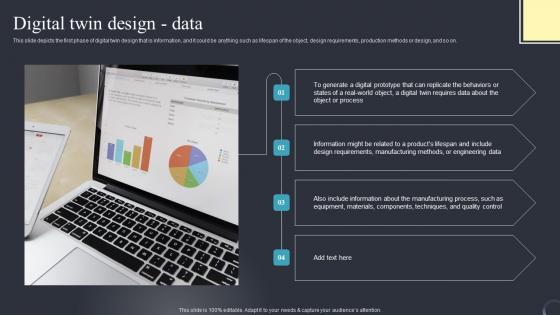 This slide depicts the first phase of digital twin design that is information, and it could be anything such as lifespan of the object, design requirements, production methods or design, and so on. If your project calls for a presentation, then Slidegeeks is your go to partner because we have professionally designed, easy to edit templates that are perfect for any presentation. After downloading, you can easily edit Digital Twin Design Data Industrial Transformation Using Digital Twin Download Pdf and make the changes accordingly. You can rearrange slides or fill them with different images. Check out all the handy templates This slide depicts the first phase of digital twin design that is information, and it could be anything such as lifespan of the object, design requirements, production methods or design, and so on.