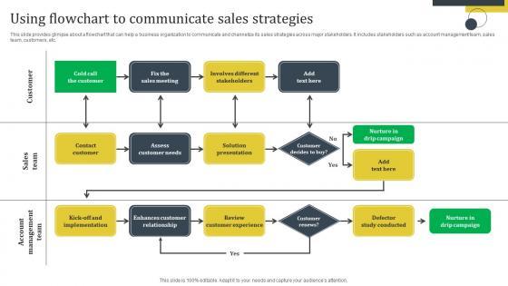 This slide provides glimpse about a flowchart that can help a business organization to communicate and channelize its sales strategies across major stakeholders. It includes stakeholders such as account management team, sales team, customers, etc. Do you have to make sure that everyone on your team knows about any specific topic I yes, then you should give Using Flowchart Communicate Effective Sales Strategy To Enhance Customer Retention Icons Pdf a try. Our experts have put a lot of knowledge and effort into creating this impeccable Using Flowchart Communicate Effective Sales Strategy To Enhance Customer Retention Icons Pdf. You can use this template for your upcoming presentations, as the slides are perfect to represent even the tiniest detail. You can download these templates from the Slidegeeks website and these are easy to edit. So grab these today This slide provides glimpse about a flowchart that can help a business organization to communicate and channelize its sales strategies across major stakeholders. It includes stakeholders such as account management team, sales team, customers, etc.
