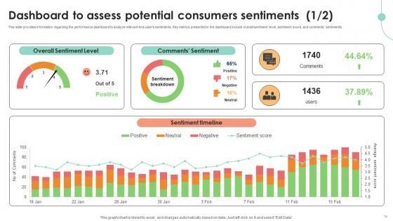 This slide provides information regarding the performance dashboard to analyze relevant end-users sentiments. Key metrics presented in the dashboard include overall sentiment level, sentiment score, and comments sentiments. Do you have an important presentation coming up Are you looking for something that will make your presentation stand out from the rest Look no further than Dashboard To Assess Potential Consumers Decoding User Emotions In Depth Exploration AI SS V. With our professional designs, you can trust that your presentation will pop and make delivering it a smooth process. And with Slidegeeks, you can trust that your presentation will be unique and memorable. So why wait Grab Dashboard To Assess Potential Consumers Decoding User Emotions In Depth Exploration AI SS V today and make your presentation stand out from the rest This slide provides information regarding the performance dashboard to analyze relevant end-users sentiments. Key metrics presented in the dashboard include overall sentiment level, sentiment score, and comments sentiments.