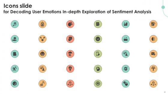 Download our innovative and attention grabbing Icons Slide For Decoding User Emotions In Depth Exploration Of Sentiment Analysis AI SS V template. The set of slides exhibit completely customizable icons. These icons can be incorporated into any business presentation. So download it immediately to clearly communicate with your clientele. Our Icons Slide For Decoding User Emotions In Depth Exploration Of Sentiment Analysis AI SS V are topically designed to provide an attractive backdrop to any subject. Use them to look like a presentation pro.