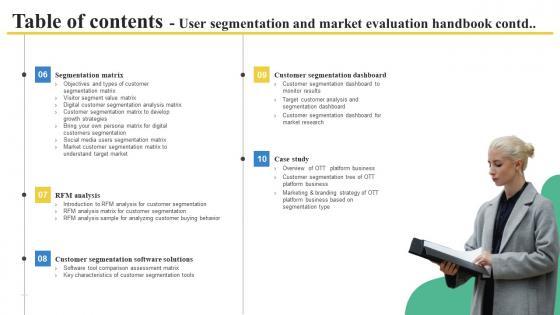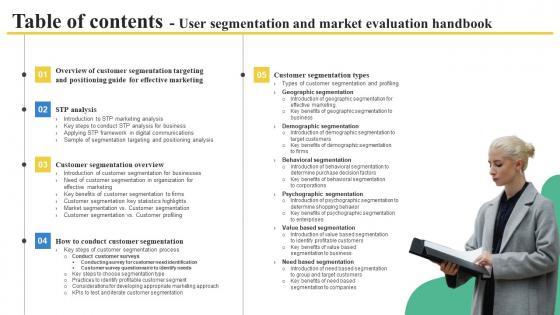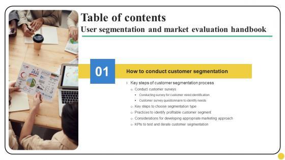 Make sure to capture your audiences attention in your business displays with our gratis customizable User Segmentation And Market Evaluation Handbook Table Of Contents Diagrams Pdf. These are great for business strategies, office conferences, capital raising or task suggestions. If you desire to acquire more customers for your tech business and ensure they stay satisfied, create your own sales presentation with these plain slides. Our User Segmentation And Market Evaluation Handbook Table Of Contents Diagrams Pdf are topically designed to provide an attractive backdrop to any subject. Use them to look like a presentation pro.