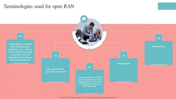 This slide depicts the terminologies used for O-RAN in an open random access network. O-RAN is used for Alliance, ORAN is referred to as the open RAN movement, and oRAN or ORAN is used on social media for O-RAN alliance. Slidegeeks has constructed Terminologies Used For Open Ran Revolutionizing Mobile Networks Sample PDF after conducting extensive research and examination. These presentation templates are constantly being generated and modified based on user preferences and critiques from editors. Here, you will find the most attractive templates for a range of purposes while taking into account ratings and remarks from users regarding the content. This is an excellent jumping-off point to explore our content and will give new users an insight into our top-notch PowerPoint Templates. This slide depicts the terminologies used for O-RAN in an open random access network. O-RAN is used for Alliance, ORAN is referred to as the open RAN movement, and oRAN or ORAN is used on social media for O-RAN alliance.