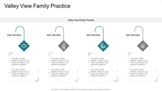 Introducing our well designed Valley View Family Practice In Powerpoint And Google Slides Cpb. This PowerPoint design presents information on topics like Valley View Family Practice. As it is predesigned it helps boost your confidence level. It also makes you a better presenter because of its high quality content and graphics. This PPT layout can be downloaded and used in different formats like PDF, PNG, and JPG. Not only this, it is available in both Standard Screen and Widescreen aspect ratios for your convenience. Therefore, click on the download button now to persuade and impress your audience. Our Valley View Family Practice In Powerpoint And Google Slides Cpb are topically designed to provide an attractive backdrop to any subject. Use them to look like a presentation pro.