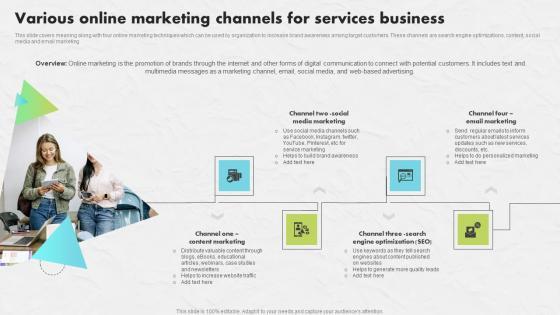 This slide covers meaning along with four online marketing techniques which can be used by organization to increase brand awareness among target customers. These channels are search engine optimizations, content, social media and email marketing Slidegeeks is one of the best resources for PowerPoint templates. You can download easily and regulate Various Online Marketing Channels Developing An Impactful SEO Marketing Plan Portrait Pdf for your personal presentations from our wonderful collection. A few clicks is all it takes to discover and get the most relevant and appropriate templates. Use our Templates to add a unique zing and appeal to your presentation and meetings. All the slides are easy to edit and you can use them even for advertisement purposes. This slide covers meaning along with four online marketing techniques which can be used by organization to increase brand awareness among target customers. These channels are search engine optimizations, content, social media and email marketing