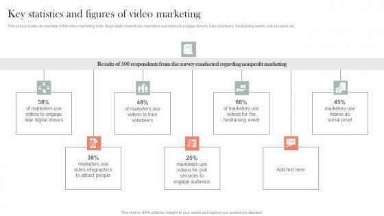 This slide provides an overview of the video marketing stats. Major stats covered are marketers use videos to engage donors, train volunteers, fundraising events, poll sessions, etc.Take your projects to the next level with our ultimate collection of Key Statistics And Figures Of Video Marketing Efficient Nonprofit Marketing Microsoft Pdf. Slidegeeks has designed a range of layouts that are perfect for representing task or activity duration, keeping track of all your deadlines at a glance. Tailor these designs to your exact needs and give them a truly corporate look with your own brand colors they all make your projects stand out from the rest. This slide provides an overview of the video marketing stats. Major stats covered are marketers use videos to engage donors, train volunteers, fundraising events, poll sessions, etc.