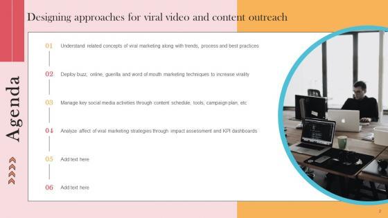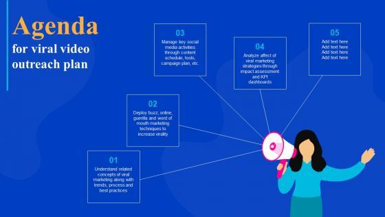 If your project calls for a presentation, then Slidegeeks is your go-to partner because we have professionally designed, easy-to-edit templates that are perfect for any presentation. After downloading, you can easily edit Agenda For Viral Video Outreach Plan Graphics Pdf and make the changes accordingly. You can rearrange slides or fill them with different images. Check out all the handy templates Our Agenda For Viral Video Outreach Plan Graphics Pdf are topically designed to provide an attractive backdrop to any subject. Use them to look like a presentation pro.