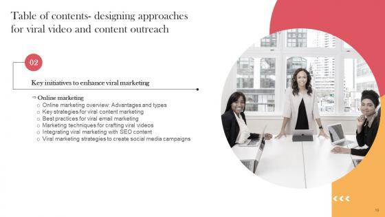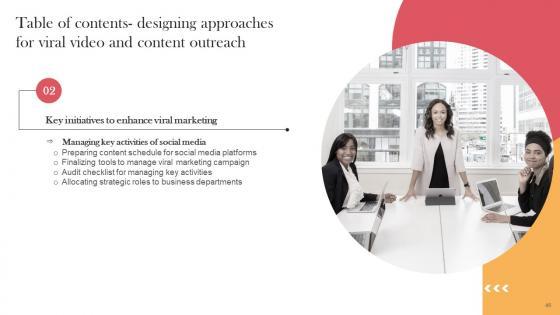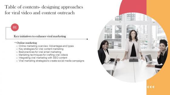 Do you have an important presentation coming up Are you looking for something that will make your presentation stand out from the rest Look no further than Designing Approaches For Viral Video And Content Table Of Contents Background Pdf. With our professional designs, you can trust that your presentation will pop and make delivering it a smooth process. And with Slidegeeks, you can trust that your presentation will be unique and memorable. So why wait Grab Designing Approaches For Viral Video And Content Table Of Contents Background Pdf today and make your presentation stand out from the rest Our Designing Approaches For Viral Video And Content Table Of Contents Background Pdf are topically designed to provide an attractive backdrop to any subject. Use them to look like a presentation pro.