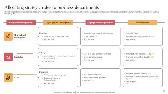 The following slide shows strategic role allocation for multiple business departments. It provides details about department, social applications, success metrics, research and development, marketing, sales, listening, talking, energizing, etc.If you are looking for a format to display your unique thoughts, then the professionally designed Allocating Strategic Roles To Business Departments Viral Video Outreach Plan Introduction Pdf is the one for you. You can use it as a Google Slides template or a PowerPoint template. Incorporate impressive visuals, symbols, images, and other charts. Modify or reorganize the text boxes as you desire. Experiment with shade schemes and font pairings. Alter, share or cooperate with other people on your work. Download Allocating Strategic Roles To Business Departments Viral Video Outreach Plan Introduction Pdf and find out how to give a successful presentation. Present a perfect display to your team and make your presentation unforgettable. The following slide shows strategic role allocation for multiple business departments. It provides details about department, social applications, success metrics, research and development, marketing, sales, listening, talking, energizing, etc.