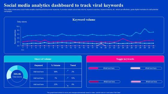 This slides showcases social media analytics dashboard to track viral keywords. It provides details about daily volume, keyword searches, keyword volume, etc. which can effectively guide digital marketers to craft potential campaigns.Get a simple yet stunning designed Social Media Analytics Dashboard To Track Viral Keywords Viral Video Outreach Plan Portrait Pdf. It is the best one to establish the tone in your meetings. It is an excellent way to make your presentations highly effective. So, download this PPT today from Slidegeeks and see the positive impacts. Our easy-to-edit Social Media Analytics Dashboard To Track Viral Keywords Viral Video Outreach Plan Portrait Pdf can be your go-to option for all upcoming conferences and meetings. So, what are you waiting for Grab this template today. This slides showcases social media analytics dashboard to track viral keywords. It provides details about daily volume, keyword searches, keyword volume, etc. which can effectively guide digital marketers to craft potential campaigns.