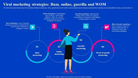 This slide showcases overview major viral marketing strategies namely buzz, online, guerilla and word of mouth. It provides details about campaign, product service marketing, social media platforms, videos, search engine, etc.Crafting an eye-catching presentation has never been more straightforward. Let your presentation shine with this tasteful yet straightforward Viral Marketing Strategies Buzz Online Guerilla And WOM Viral Video Outreach Plan Clipart Pdf template. It offers a minimalistic and classy look that is great for making a statement. The colors have been employed intelligently to add a bit of playfulness while still remaining professional. Construct the ideal Viral Marketing Strategies Buzz Online Guerilla And WOM Viral Video Outreach Plan Clipart Pdf that effortlessly grabs the attention of your audience. Begin now and be certain to wow your customers. This slide showcases overview major viral marketing strategies namely buzz, online, guerilla and word of mouth. It provides details about campaign, product service marketing, social media platforms, videos, search engine, etc.