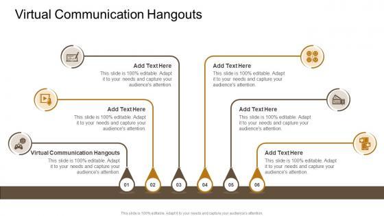 Introducing our well designed Virtual Communication Hangouts In Powerpoint And Google Slides Cpb. This PowerPoint design presents information on topics like Virtual Communication Hangouts. As it is predesigned it helps boost your confidence level. It also makes you a better presenter because of its high quality content and graphics. This PPT layout can be downloaded and used in different formats like PDF, PNG, and JPG. Not only this, it is available in both Standard Screen and Widescreen aspect ratios for your convenience. Therefore, click on the download button now to persuade and impress your audience. Our Virtual Communication Hangouts In Powerpoint And Google Slides Cpb are topically designed to provide an attractive backdrop to any subject. Use them to look like a presentation pro.