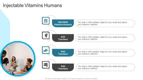 Introducing our well designed Injectable Vitamins Humans In Powerpoint And Google Slides Cpb. This PowerPoint design presents information on topics like Injectable Vitamins Humans. As it is predesigned it helps boost your confidence level. It also makes you a better presenter because of its high quality content and graphics. This PPT layout can be downloaded and used in different formats like PDF, PNG, and JPG. Not only this, it is available in both Standard Screen and Widescreen aspect ratios for your convenience. Therefore, click on the download button now to persuade and impress your audience. Our Injectable Vitamins Humans In Powerpoint And Google Slides Cpb are topically designed to provide an attractive backdrop to any subject. Use them to look like a presentation pro.