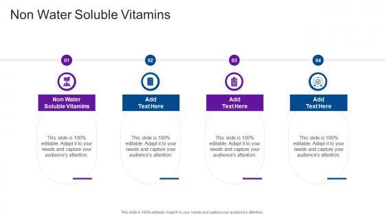 Introducing our well-designed Non Water Soluble Vitamins In Powerpoint And Google Slides Cpb. This PowerPoint design presents information on topics like Non Water Soluble Vitamins. As it is predesigned it helps boost your confidence level. It also makes you a better presenter because of its high-quality content and graphics. This PPT layout can be downloaded and used in different formats like PDF, PNG, and JPG. Not only this, it is available in both Standard Screen and Widescreen aspect ratios for your convenience. Therefore, click on the download button now to persuade and impress your audience. Our Non Water Soluble Vitamins In Powerpoint And Google Slides Cpb are topically designed to provide an attractive backdrop to any subject. Use them to look like a presentation pro.