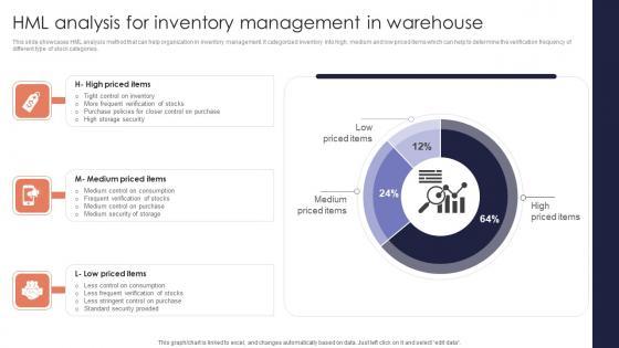 This slide showcases HML analysis method that can help organization in inventory management. It categorized inventory into high, medium and low priced items which can help to determine the verification frequency of different type of stock categories. Present like a pro with HML Analysis Inventory Minimizing Inventory Wastage Through Warehouse Microsoft Pdf Create beautiful presentations together with your team, using our easy to use presentation slides. Share your ideas in real time and make changes on the fly by downloading our templates. So whether you are in the office, on the go, or in a remote location, you can stay in sync with your team and present your ideas with confidence. With Slidegeeks presentation got a whole lot easier. Grab these presentations today. This slide showcases HML analysis method that can help organization in inventory management. It categorized inventory into high, medium and low priced items which can help to determine the verification frequency of different type of stock categories.