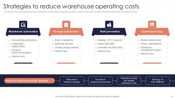 This slide showcases strategies that can help organization to reduce warehousing costs. It includes warehouse automation, storage optimization, theft prevention and optimize picking. Explore a selection of the finest Strategies Reduce Warehouse Minimizing Inventory Wastage Through Warehouse Slides Pdf here. With a plethora of professionally designed and pre made slide templates, you can quickly and easily find the right one for your upcoming presentation. You can use our Strategies Reduce Warehouse Minimizing Inventory Wastage Through Warehouse Slides Pdf to effectively convey your message to a wider audience. Slidegeeks has done a lot of research before preparing these presentation templates. The content can be personalized and the slides are highly editable. Grab templates today from Slidegeeks. This slide showcases strategies that can help organization to reduce warehousing costs. It includes warehouse automation, storage optimization, theft prevention and optimize picking.