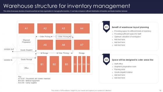 This slide showcases structure of warehouse that can help organization in managing the inventory. It can help company in efficient distribution of inventory and faster inventory turnover. Slidegeeks has constructed Procurement Strategies For Reducing Stock Wastage Warehouse Structure For Inventory Download PDF after conducting extensive research and examination. These presentation templates are constantly being generated and modified based on user preferences and critiques from editors. Here, you will find the most attractive templates for a range of purposes while taking into account ratings and remarks from users regarding the content. This is an excellent jumping off point to explore our content and will give new users an insight into our top notch PowerPoint Templates.