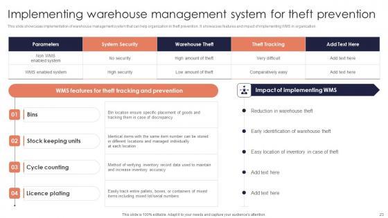 This slide showcases implementation of warehouse management system that can help organization in theft prevention. It showacses features and impact of implementing WMS in organization. Do you have an important presentation coming up Are you looking for something that will make your presentation stand out from the rest Look no further than Implementing Warehouse Management Minimizing Inventory Wastage Through Warehouse Information Pdf. With our professional designs, you can trust that your presentation will pop and make delivering it a smooth process. And with Slidegeeks, you can trust that your presentation will be unique and memorable. So why wait Grab Implementing Warehouse Management Minimizing Inventory Wastage Through Warehouse Information Pdf today and make your presentation stand out from the rest This slide showcases implementation of warehouse management system that can help organization in theft prevention. It showacses features and impact of implementing WMS in organization.