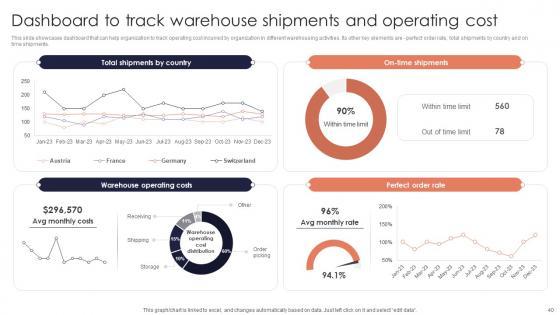 This slide showcases dashboard that can help organization to track operating cost incurred by organization in different warehousing activities. Its other key elements are perfect order rate, total shipments by country and on time shipments. Do you have to make sure that everyone on your team knows about any specific topic I yes, then you should give Dashboard Track Warehouse Minimizing Inventory Wastage Through Warehouse Designs Pdf a try. Our experts have put a lot of knowledge and effort into creating this impeccable Dashboard Track Warehouse Minimizing Inventory Wastage Through Warehouse Designs Pdf. You can use this template for your upcoming presentations, as the slides are perfect to represent even the tiniest detail. You can download these templates from the Slidegeeks website and these are easy to edit. So grab these today This slide showcases dashboard that can help organization to track operating cost incurred by organization in different warehousing activities. Its other key elements are perfect order rate, total shipments by country and on time shipments.