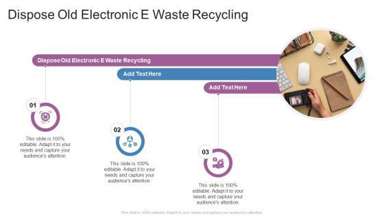 Introducing our well-designed Dispose Old Electronic E Waste Recycling In Powerpoint And Google Slides Cpb. This PowerPoint design presents information on topics like Dispose Old Electronic E Waste Recycling. As it is predesigned it helps boost your confidence level. It also makes you a better presenter because of its high-quality content and graphics. This PPT layout can be downloaded and used in different formats like PDF, PNG, and JPG. Not only this, it is available in both Standard Screen and Widescreen aspect ratios for your convenience. Therefore, click on the download button now to persuade and impress your audience. Our Dispose Old Electronic E Waste Recycling In Powerpoint And Google Slides Cpb are topically designed to provide an attractive backdrop to any subject. Use them to look like a presentation pro.