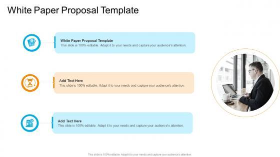 Introducing our well-designed White Paper Proposal Template In Powerpoint And Google Slides Cpb. This PowerPoint design presents information on topics like White Paper Proposal Template. As it is predesigned it helps boost your confidence level. It also makes you a better presenter because of its high-quality content and graphics. This PPT layout can be downloaded and used in different formats like PDF, PNG, and JPG. Not only this, it is available in both Standard Screen and Widescreen aspect ratios for your convenience. Therefore, click on the download button now to persuade and impress your audience. Our White Paper Proposal Template In Powerpoint And Google Slides Cpb are topically designed to provide an attractive backdrop to any subject. Use them to look like a presentation pro.