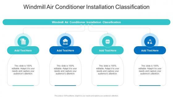 Introducing our well-designed Windmill Air Conditioner Installation Classification In Powerpoint And Google Slides Cpb. This PowerPoint design presents information on topics like Windmill Air Conditioner Installation Classification. As it is predesigned it helps boost your confidence level. It also makes you a better presenter because of its high-quality content and graphics. This PPT layout can be downloaded and used in different formats like PDF, PNG, and JPG. Not only this, it is available in both Standard Screen and Widescreen aspect ratios for your convenience. Therefore, click on the download button now to persuade and impress your audience. Our Windmill Air Conditioner Installation Classification In Powerpoint And Google Slides Cpb are topically designed to provide an attractive backdrop to any subject. Use them to look like a presentation pro.
