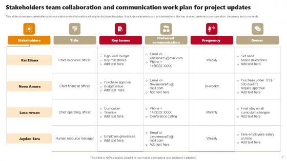 This slide showcase action plan for partner collaboration and communication about project updates and milestone achievements. It includes elements such as stakeholders, information, communicator, channel frequency, priority level etc. Pitch your topic with ease and precision using this Project Partners Team Collaboration And Communication Work Plan Microsoft Pdf. This layout presents information on Communicator, Information, Frequency. It is also available for immediate download and adjustment. So, changes can be made in the color, design, graphics or any other component to create a unique layout. This slide showcase action plan for partner collaboration and communication about project updates and milestone achievements. It includes elements such as stakeholders, information, communicator, channel frequency, priority level etc.
