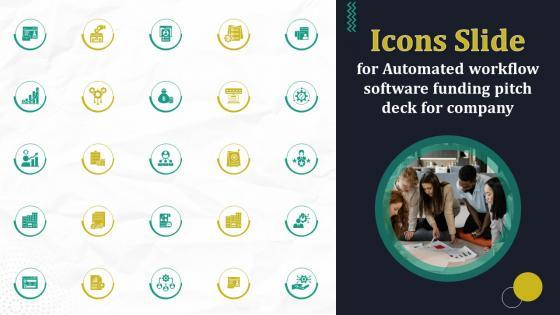Do you have an important presentation coming up Are you looking for something that will make your presentation stand out from the rest Look no further than Icons Slide For Automated Workflow Software Funding Pitch Deck For Company. With our professional designs, you can trust that your presentation will pop and make delivering it a smooth process. And with Slidegeeks, you can trust that your presentation will be unique and memorable. So why wait Grab Icons Slide For Automated Workflow Software Funding Pitch Deck For Company today and make your presentation stand out from the rest Our Icons Slide For Automated Workflow Software Funding Pitch Deck For Company are topically designed to provide an attractive backdrop to any subject. Use them to look like a presentation pro.