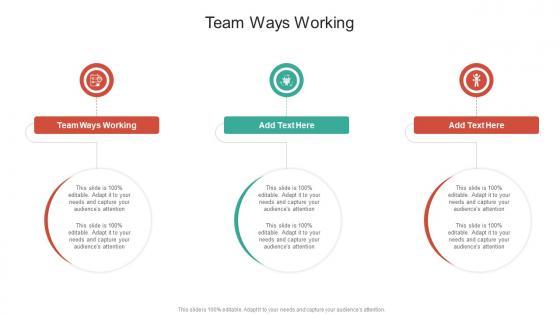 Presenting our innovatively-designed set of slides titled Team Ways Working In Powerpoint And Google Slides Cpb This completely editable PowerPoint graphic exhibits Team Ways Working that will help you convey the message impactfully. It can be accessed with Google Slides and is available in both standard screen and widescreen aspect ratios. Apart from this, you can download this well-structured PowerPoint template design in different formats like PDF, JPG, and PNG. So, click the download button now to gain full access to this PPT design. Our Team Ways Working In Powerpoint And Google Slides Cpb are topically designed to provide an attractive backdrop to any subject. Use them to look like a presentation pro.