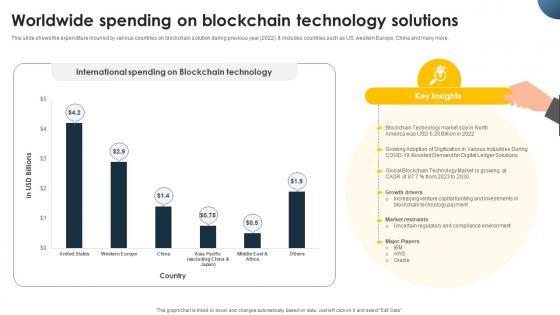This slide shows the expenditure incurred by various countries on blockchain solution during previous year 2022. It includes countries such as US, western Europe, China and many more. If you are looking for a format to display your unique thoughts, then the professionally designed Complete Beginners Guide Worldwide Spending On Blockchain Technology Fin SS V is the one for you. You can use it as a Google Slides template or a PowerPoint template. Incorporate impressive visuals, symbols, images, and other charts. Modify or reorganize the text boxes as you desire. Experiment with shade schemes and font pairings. Alter, share or cooperate with other people on your work. Download Complete Beginners Guide Worldwide Spending On Blockchain Technology Fin SS V and find out how to give a successful presentation. Present a perfect display to your team and make your presentation unforgettable. This slide shows the expenditure incurred by various countries on blockchain solution during previous year 2022. It includes countries such as US, western Europe, China and many more.