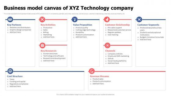 This slide represents the business model canvas of XYZ solutions Ltd. It includes key partners, activities, resources, cost structure, customer relationships, channels, revenue streams, etc. Find a pre-designed and impeccable Business Model Canvas Of XYZ Technology Company Cloud Game Development Fundraising Pitch Deck. The templates can ace your presentation without additional effort. You can download these easy-to-edit presentation templates to make your presentation stand out from others. So, what are you waiting for Download the template from Slidegeeks today and give a unique touch to your presentation. This slide represents the business model canvas of XYZ solutions Ltd. It includes key partners, activities, resources, cost structure, customer relationships, channels, revenue streams, etc.