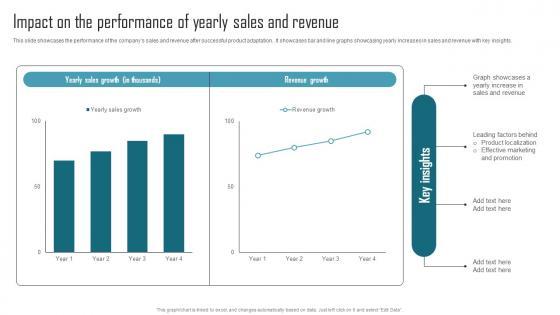 This slide showcases the performance of the companys sales and revenue after successful product adaptation.. It showcases bar and line graphs showcasing yearly increases in sales and revenue with key insights. Retrieve professionally designed Effective Product Adaptation Impact On The Performance Of Yearly Sales And Revenue Introduction PDF to effectively convey your message and captivate your listeners. Save time by selecting pre-made slideshows that are appropriate for various topics, from business to educational purposes. These themes come in many different styles, from creative to corporate, and all of them are easily adjustable and can be edited quickly. Access them as PowerPoint templates or as Google Slides themes. You do not have to go on a hunt for the perfect presentation because Slidegeeks got you covered from everywhere. This slide showcases the performance of the companys sales and revenue after successful product adaptation.. It showcases bar and line graphs showcasing yearly increases in sales and revenue with key insights.