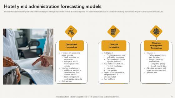 The slide showcases forecasting models that assist in identifying the full range of possibilities for hotel revenue management. This slide includes models such as operational forecasting, financial forecasting, revenue management forecasting, etc. Showcasing this set of slides titled Hotel Yield Administration Forecasting Models Portrait Pdf The topics addressed in these templates are Operational Forecasting, Financial Forecasting, Revenue Management All the content presented in this PPT design is completely editable. Download it and make adjustments in color, background, font etc. as per your unique business setting. The slide showcases forecasting models that assist in identifying the full range of possibilities for hotel revenue management. This slide includes models such as operational forecasting, financial forecasting, revenue management forecasting, etc.