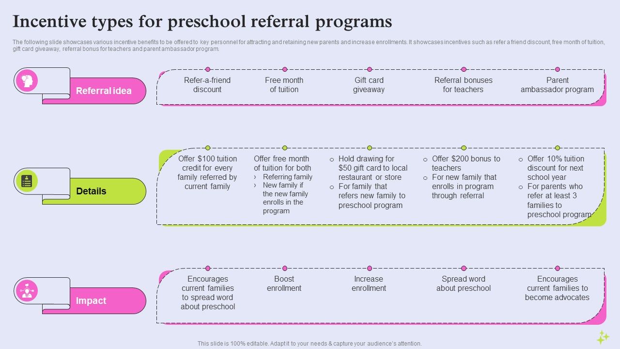Pre School Marketing Strategy To Enhance Enrollment Rate Incentive Types For Preschool Sample PDF with all 9 slides: