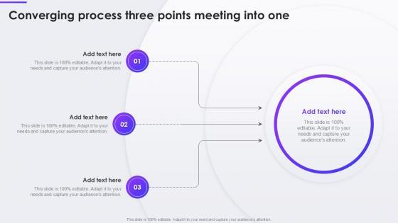Coming up with a presentation necessitates that the majority of the effort goes into the content and the message you intend to convey. The visuals of a PowerPoint presentation can only be effective if it supplements and supports the story that is being told. Keeping this in mind our experts created Converging Process Three Points Meeting Into One to reduce the time that goes into designing the presentation. This way, you can concentrate on the message while our designers take care of providing you with the right template for the situation.